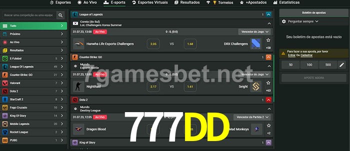 A aposta 777DD oferece aos jogadores a experiência mais conveniente de apostas em eSports!